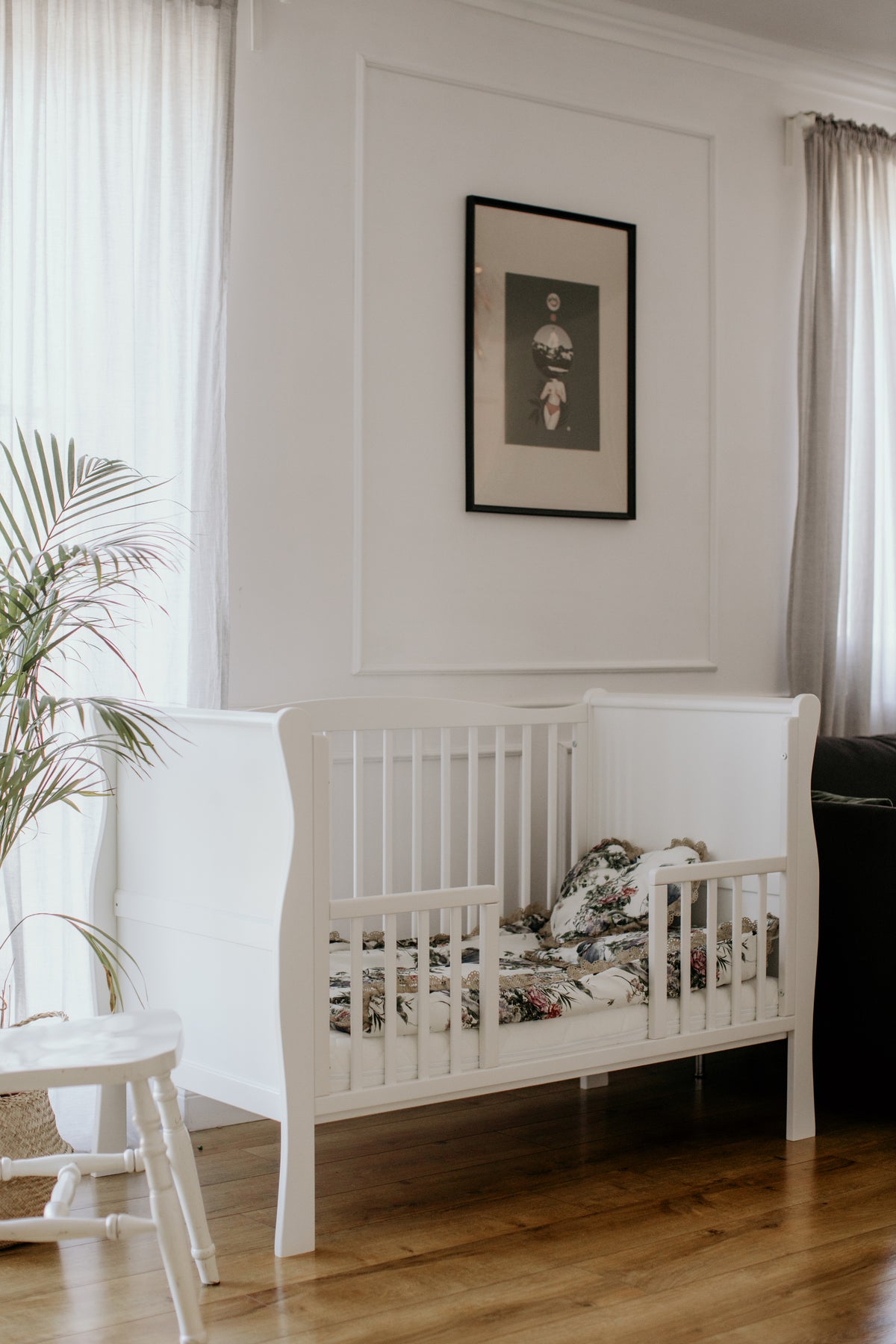 - سرير أطفال أبيض جميل ومتين يُرتقي بأي غرفة طفل