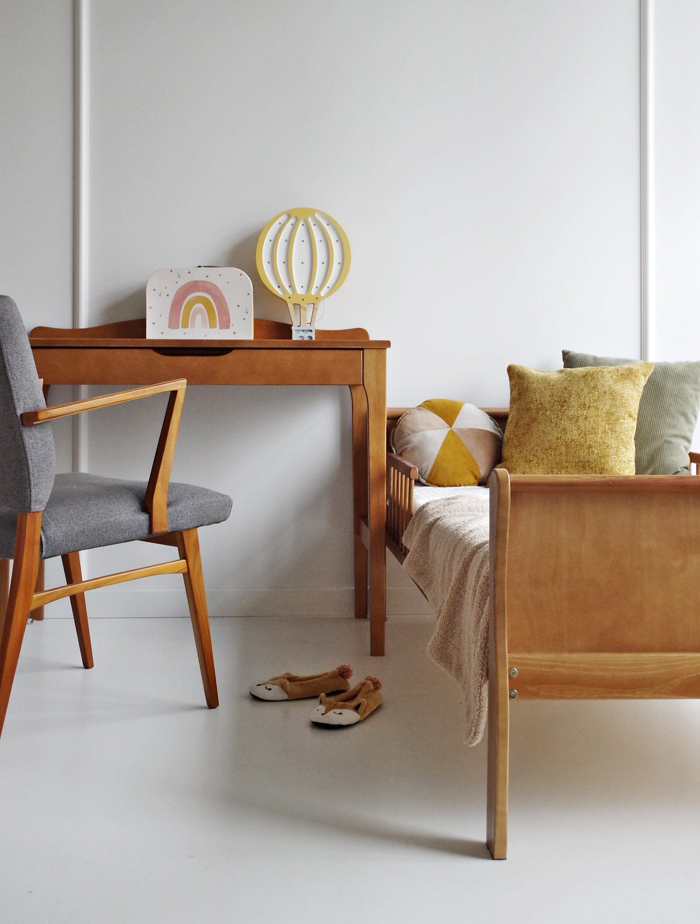 Si coordina con la collezione Woodies Noble, inclusi il Noble Lettino 120×60 e il Noble Lettino trasformabile 140×70, per una nursery o cameretta armonica e coerente.