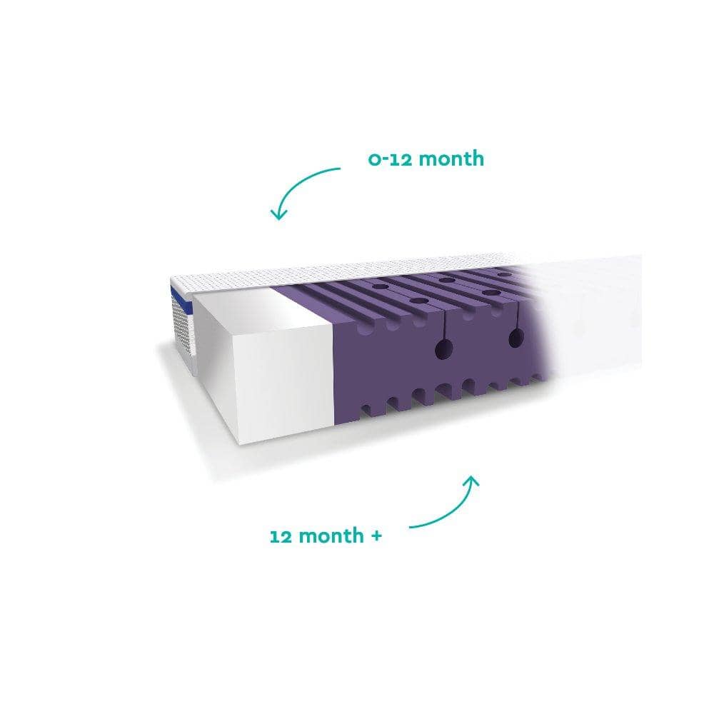 - Dobbelsidet design: fast støtte til babyer, blødere komfort til småbørn.